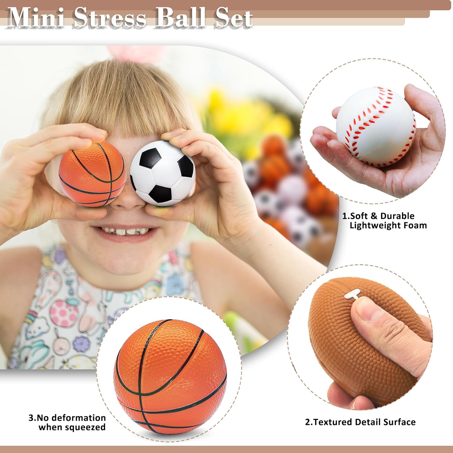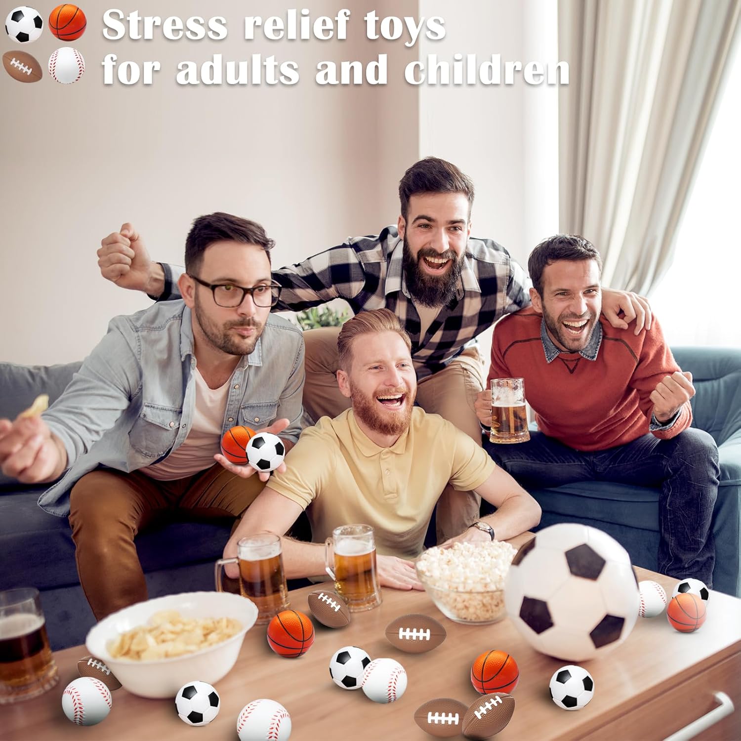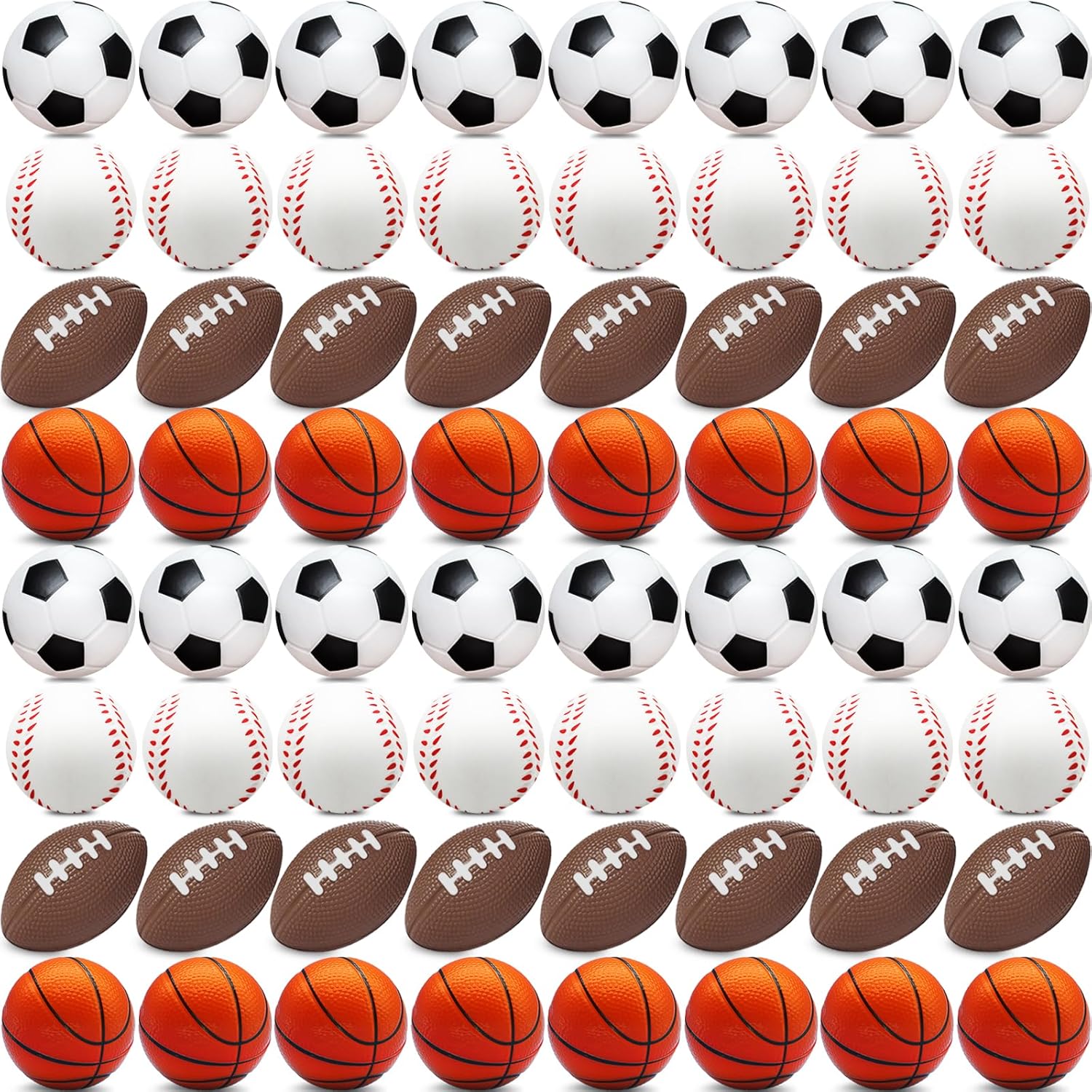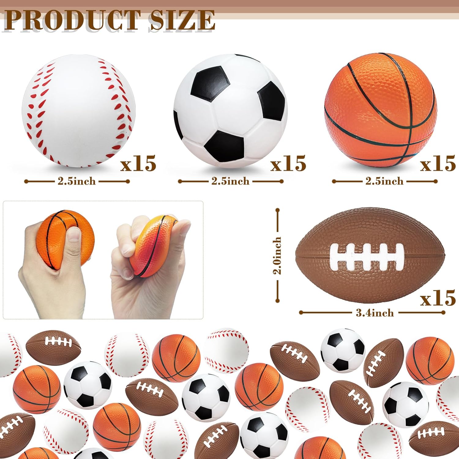 - 4 Styles Sports Stress Balls Bulk: you will receive 60 pieces of small sports stress balls in 4 styles, including basketball, football, baseball, and football, 15 of each style. Enjoy a wide variety of options. stress relief squeeze balls ideal for gifts, party favors, goodie bag, and stocking stuffers