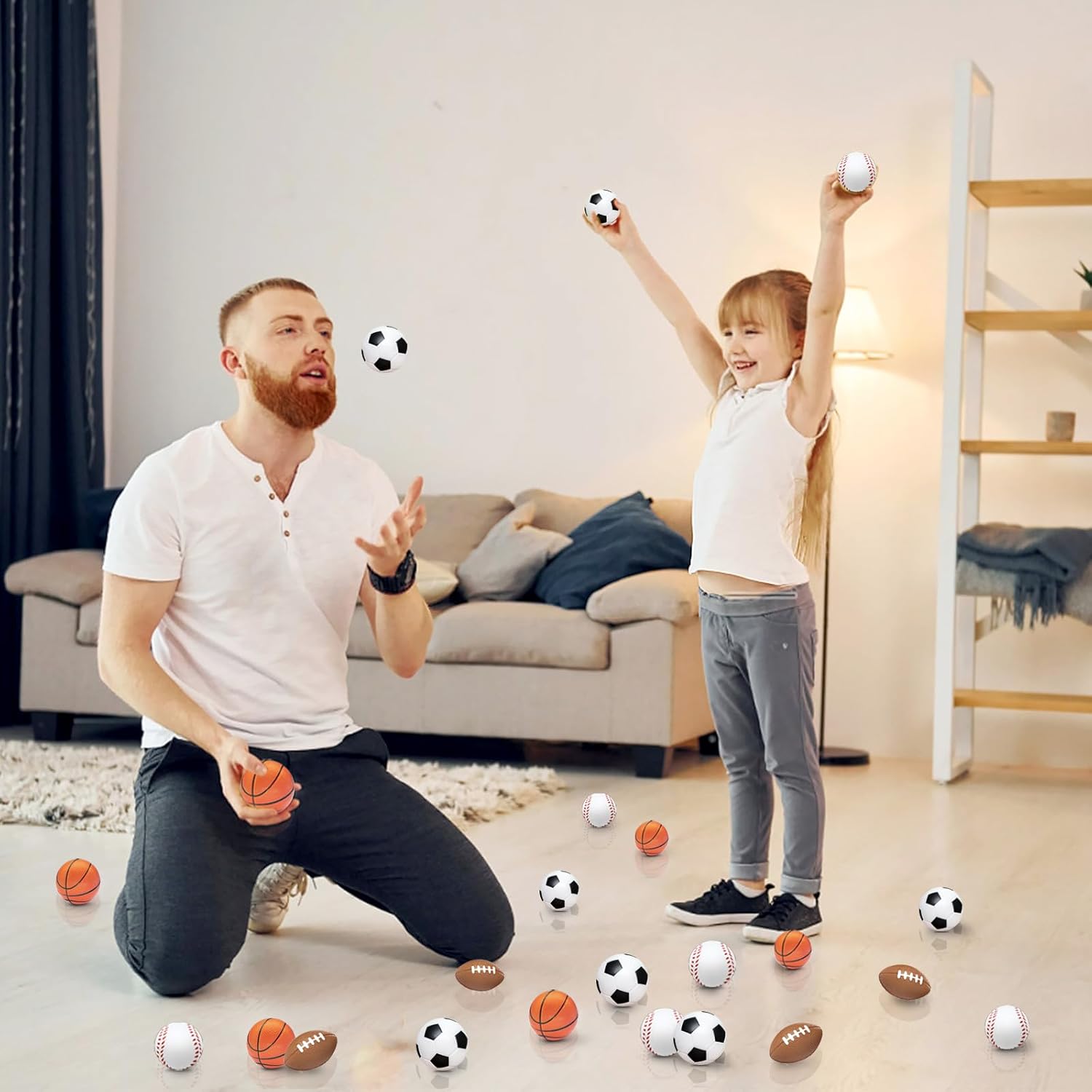 60 Pieces Sports Stress Balls for Kids Mini Footballs Ball, Soccer, Basketball, Baseball Foam Squeeze Stress Balls
