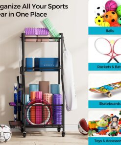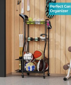 Be the first to review “Sports Equipment & Toy Storage Rack with Wheels, 3-Tier Ball Organizer for Balls” Cancel reply